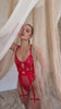 Pure Allure Series - Embroidered Guipure Bodysuit with Suspender Straps - Red